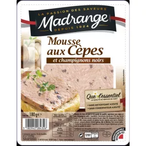 猪油、猪肝 14%、水、鸡肝 12%、半脱脂牛奶、猪皮、牛肝菌 3%、黑蘑菇 2.4%、小麦粉、天然香料、盐、猪明胶、洋葱、糖、胡椒粉、发酵,着色:普通焦糖。
