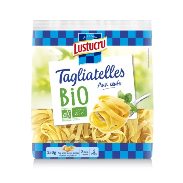 查看品牌Lustucru的所有产品Farine de BLE tendre* et semoule de BLE dur*, OEUFS * 20%, eau. *Ingrédient issu de l'agriculture biologique. Peut contenir des traces de soja, moutarde et de lait. Conditionné sous atmosphère protectrice.