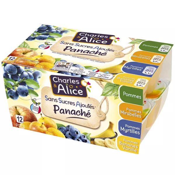 هريس التفاح والموز 45010 ، نكهة الفانيليا الطبيعية 0.06٪ ، مضادات الأكسدة: حمض الأسكوربيك ، بذور الفانيليا المستهلك 0.03٪ ، حامض: حامض الستريك. يحتوي على سكريات طبيعية
