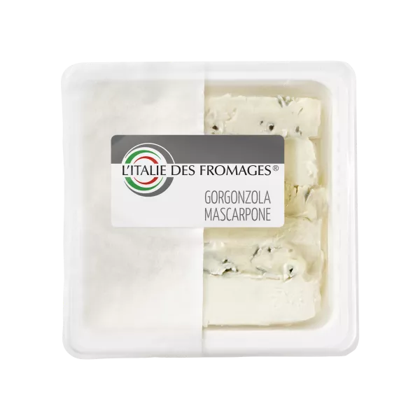ماسكاربوني 55٪ (كريم حليب البقر المبستر ، حليب البقر المبستر ، حامض الستريك) و Gorgonzola 45٪ (حليب البقر المبستر ، الملح ، المنفحة ، البنسليوم).