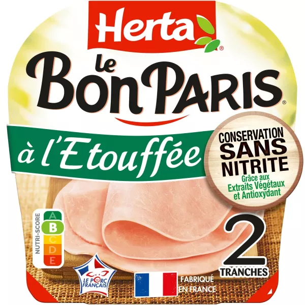 Jambon frais de porc, Sel, Arômes naturels (présence naturelle de polyphénols), Bouillon (eau, gras et couenne de porc, os de porc, sel, extraits de carotte et d'oignon, épices et plantes aromatiques), Sucre, Chlorure de potassium, Antioxydant: Acide ascorbique, Vinaigre en poudre.