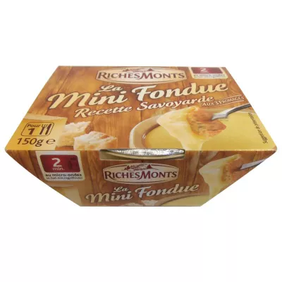 Formaggio 46% (Emmental 36%, Comté 7%, Tomme de Bresse 3%), acqua, vino bianco 18%, panna, amido di mais, sale, correttore di acidità: E339, aglio, Kirsch.