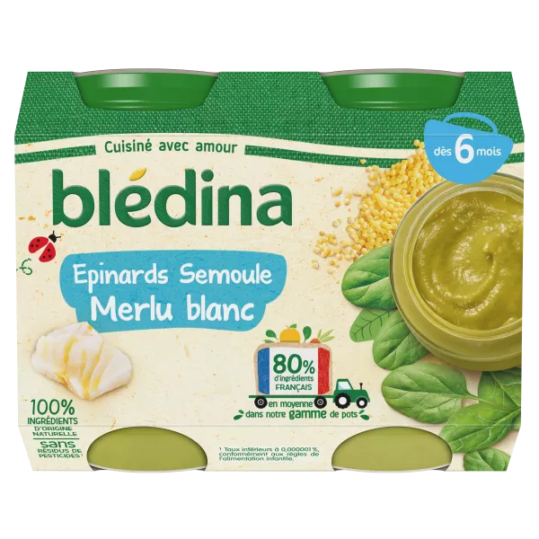 Vasetto piccolo di semolino spinaci e nasello bianco dai 6 mesi 2x200g - BLEDINA
