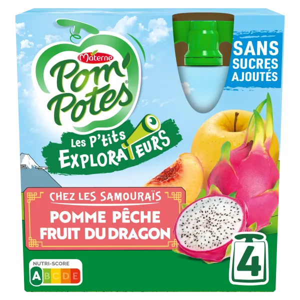 FORNITORE DI Les P'tits Explorateurs Composte di Mela Pesca Dragon Fruit 4x90g - POM' POTES ALL'INGROSSO
