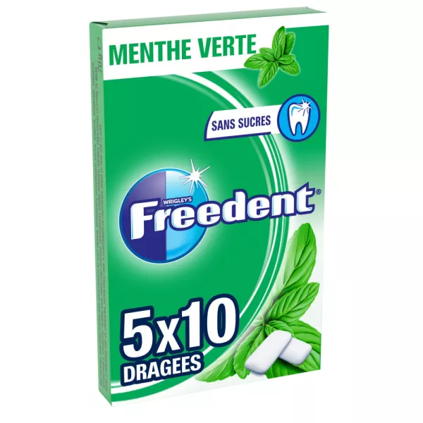 Green Mint Chewing Gum Without Sugar; 5x10 sugared almonds - FREEDENT