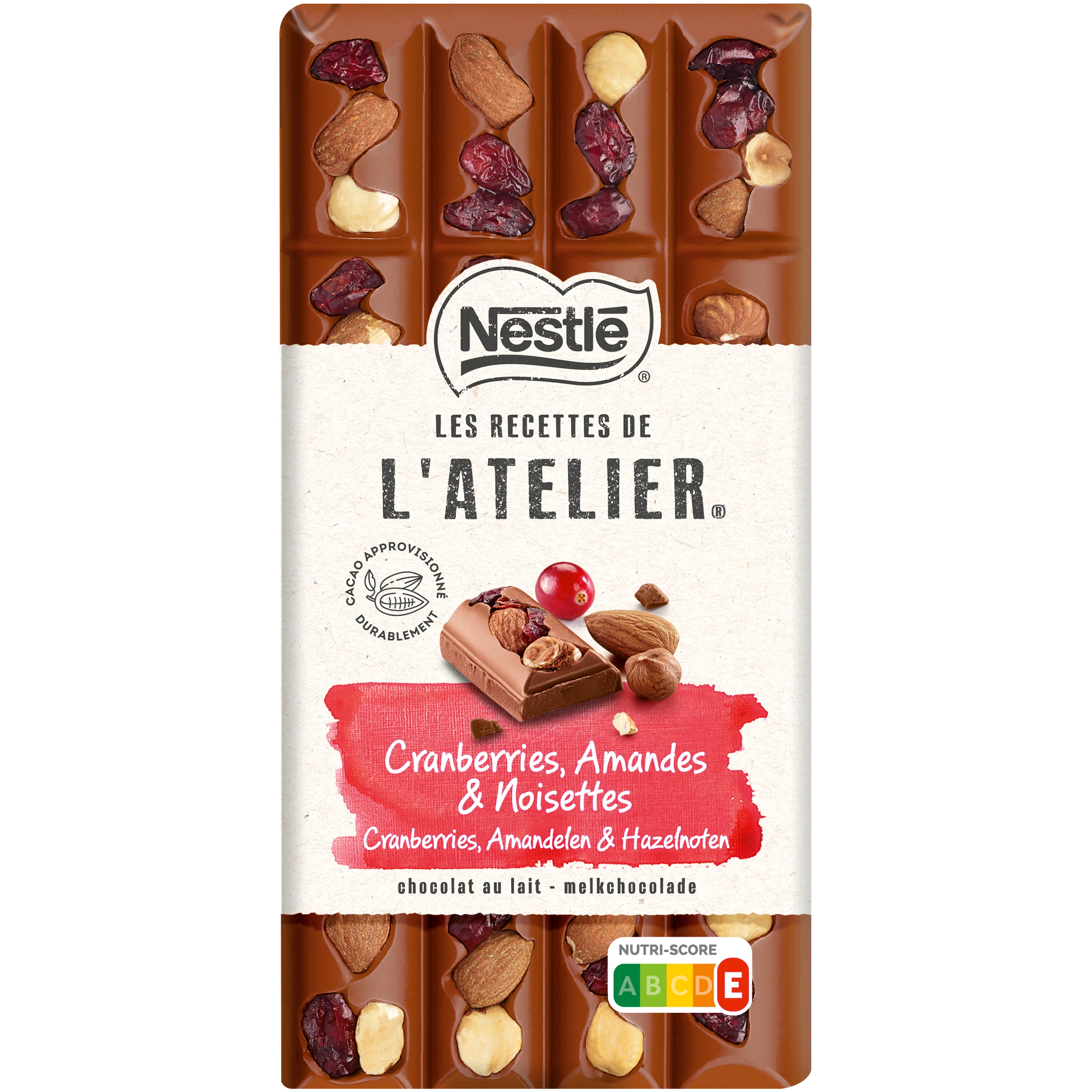 Sucre, beurre de cacao, poudre de lait, beurre laitier concentré, pâte de cacao, lactose, meringue lactée 2,8% (sucre, amidon de blé, protéines de lait, vanilline), amidon de maïs, poudre de lait écrémé, sucre inverti, stabilisant (sorbitol), sirop de glucose, jus concentré de framboise 0,9%, émulsifiant (lécithine de soja), acidifiant (acide citrique), extrait de malt d'orge, arôme naturel de framboise, arôme. Peut contenir du blé, de l'œuf et des fruits à coque.