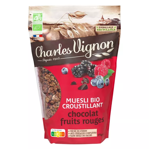 Organic Crispy Chocolate Red Fruit Muesli Cereals 375g - Charles Vignon