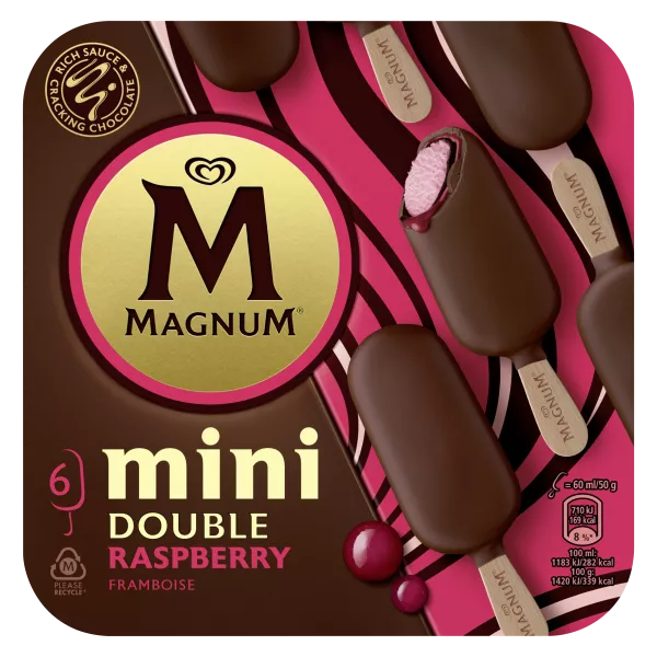 Sugar, rehydrated skimmed MILK, raspberry puree (11%), glucose-fructose syrup, coconut oil, cocoa mass¹, cocoa butter¹, whole MILK powder, skimmed MILK powder or condensed, concentrated BUTTER, glucose syrup , lean cocoa powder¹, concentrated raspberry juice, modified starch, emulsifiers (E476, E471, E442), LACTOSE and MILK proteins, stabilizers (E412, E410, E440i), skimmed MILK powder, carrot concentrate, natural flavor of raspberry, natural flavors, aroma, acidity regulators (E331iii, E270, E330), salt, concentrated beet juice, concentrated safflower, concentrated blackcurrant, concentrated lemon. May contain: soy, almond. Gluten free. ¹Rainforest Alliance™ verified.