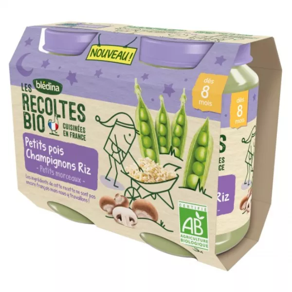 Pots Les Récoltes Peas, Mushroom, Rice from 8 months 2x200g - BLEDINA