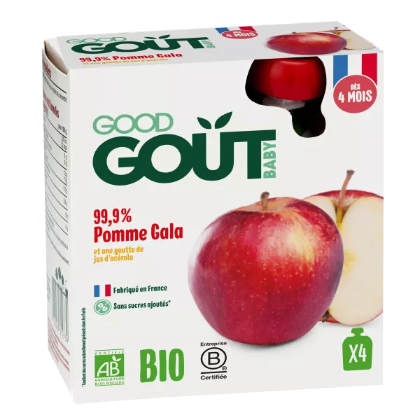 Gala organic apple puree, from 4 months 4x85g - GOOD GOUT