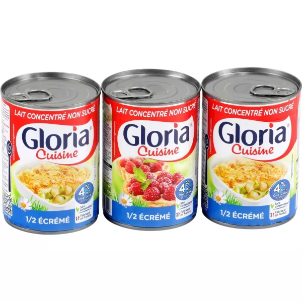 Unsweetened condensed milk 1/2 skimmed 4% fat 3x410g - GLORIA