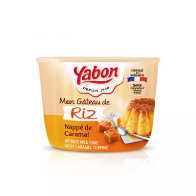 Rice cake (370g): Whole milk 70%, round rice 10%, sugar, cream, thickener: xanthan gum, rice flour, natural vanilla flavor. Caramel coating (50 g): Caramel 69% (sugar, water), water, cream, sugar, thickener: xanthan gum.