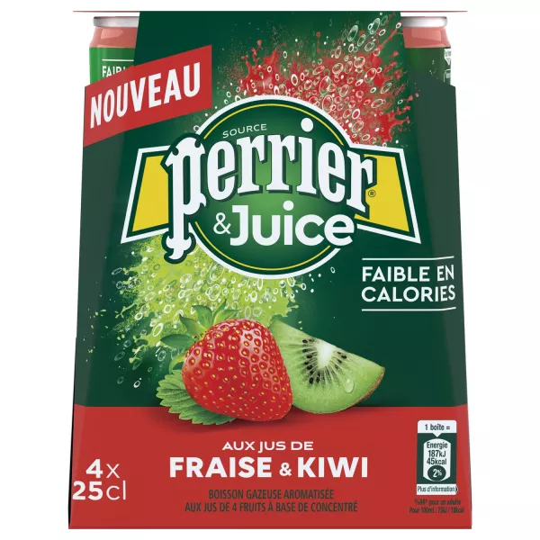 Agua con gas sabor fresa-kiwi 4x25cl - PERRIER & JUICY