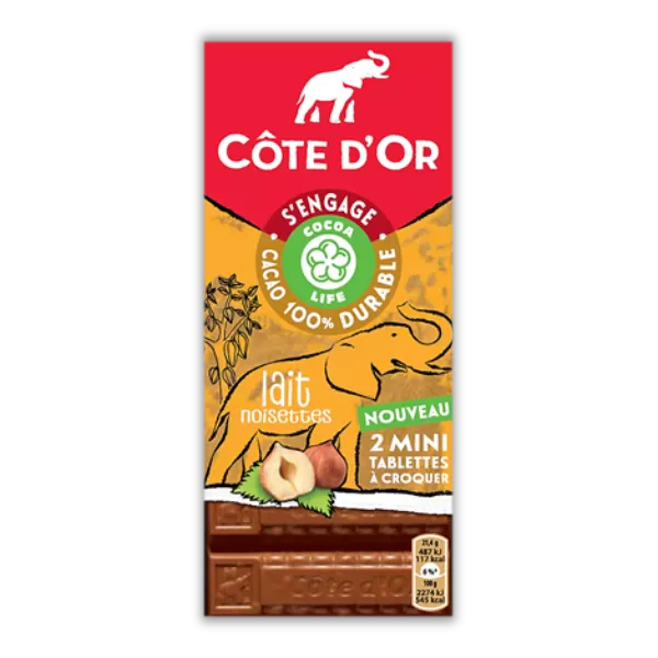 Tablette de chocolat au lait noisette Cacao 2x75g - COTE D'OR