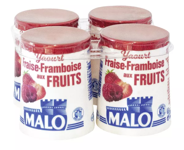 Lait partiellement écrémé pasteurisé (63%), lait concentré écrémé, sucre (8,5%), fraise (5,4%), framboise, (5,4%), sirop de glucose-fructose, epaississants: pectines, gomme guar et gomme xanthane, arômes, concentré de jus de sureau, conservateur: sorbate de potassium, ferments lactiques. Origine du lait: France