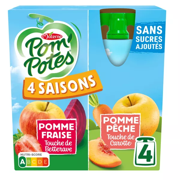 PROVEEDOR EN Compotas 4 Estaciones Manzana Fresa, Manzana Melocotón Sin Azúcares Añadidos 4x90g - Pom'potes AL POR MAYOR