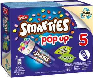Ver todos los productos de la marca SmartiesLECHE desnatada rehidratada, agua, azúcar, jarabe de azúcar invertido, jarabe de glucosa, suero de leche en polvo, maltodextrinas (fibras), grasa vegetal de coco, manteca de cacao, LECHE desnatada en polvo, pasta de cacao, grasa butírica, LECHE, harina de TRIGO, almidón de arroz, estabilizantes (guar goma de mascar, harina de semilla de algarroba, alga Euchema procesada), emulgentes (mono y diglicéridos de ácidos grasos*, lecitinas*), aromas naturales, frutas y plantas (cártamo, rábano, zanahoria negra, limón, hibisco), aromas naturales de vainilla, glaseado (goma laca, cera de carnauba, cera de abeja blanca), concentrado de espirulina,. Puede contener nueces. * de origen vegetal.