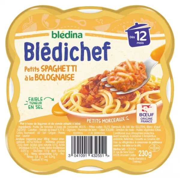 PROVEEDOR EN Plato de bebé de 12 meses pequeños espagueti con boloñesa blédichef 230g - BLÉDINA AL POR MAYOR