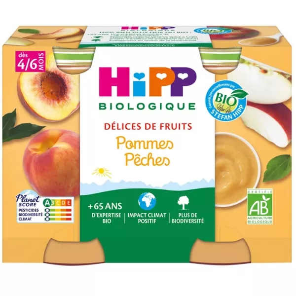 Compotas Delicias de Frutas Manzana/Melocotón Bio 2x190g - HIPP