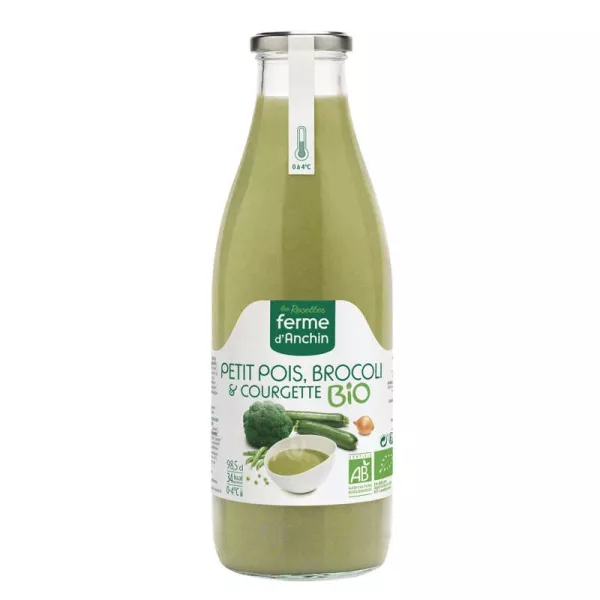 Agua, guisantes 21 %, calabacín 10 %, brócoli* 10 %, cebolla, nata*, almidón de arroz, chalote, chalote, aroma natural, sal. ingredientes de agricultura ecologica