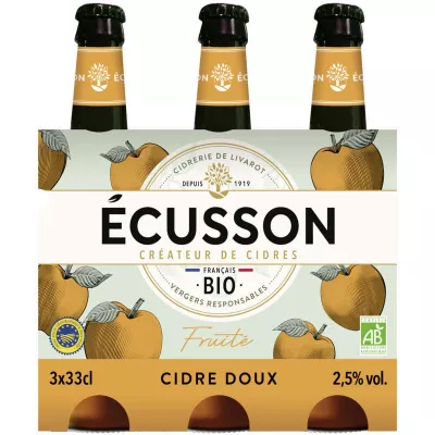 PROVEEDOR EN Sidra Dulce Afrutada Ecológica 3x33cl, 2,5° - ECUSSON AL POR MAYOR