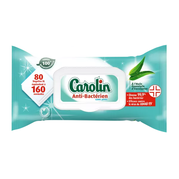 FOURNISSEUR EN Lingettes nettoyantes extra-larges Carolin anti-bactérien X80 EN GROS