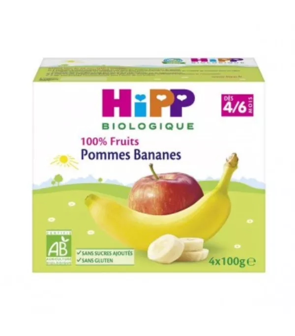 Compotes bébé pommes & bananes BIO dès 4/6 mois 4x100g - HIPP