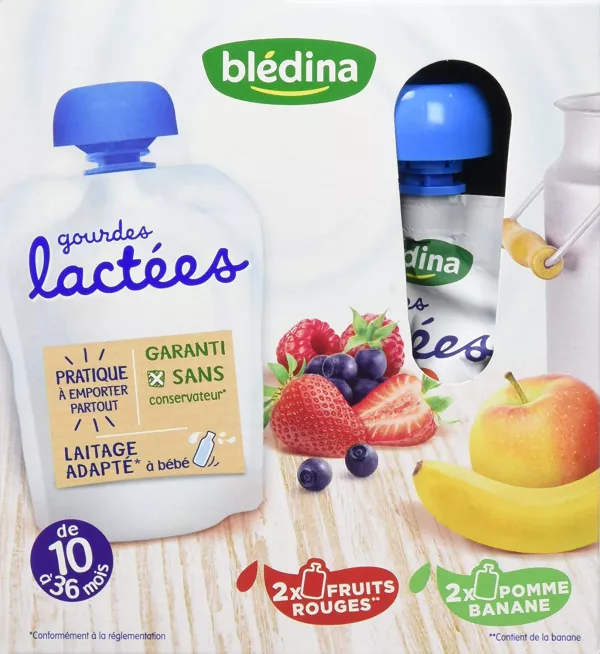 FOURNISSEUR EN Gourdes lactées fruits rouges / pommes banane 4x85g - BLEDINA EN GROS