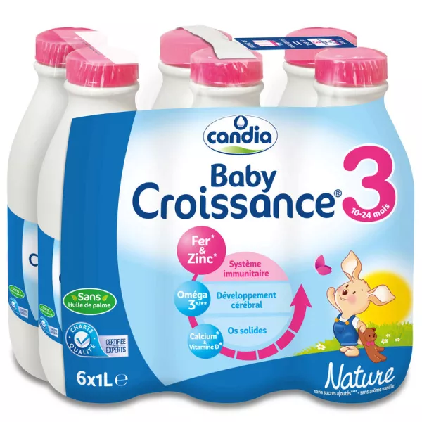 Lait liquide baby croissance nature 3ème âge 6x1L - CANDIA