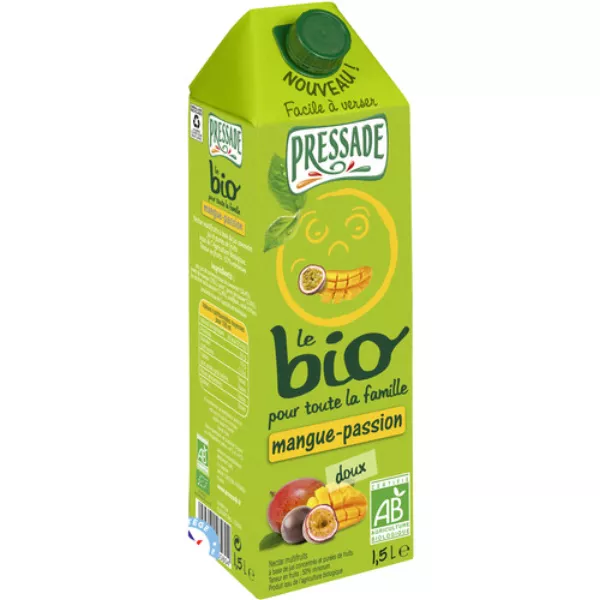 Eau, jus de pomme à base de concentré (38,3%), purée de mangue (7,5%), sucre, purée de banane (2,7%), jus de fruit de la passion (2,3%), acidifiant : acide citrique.