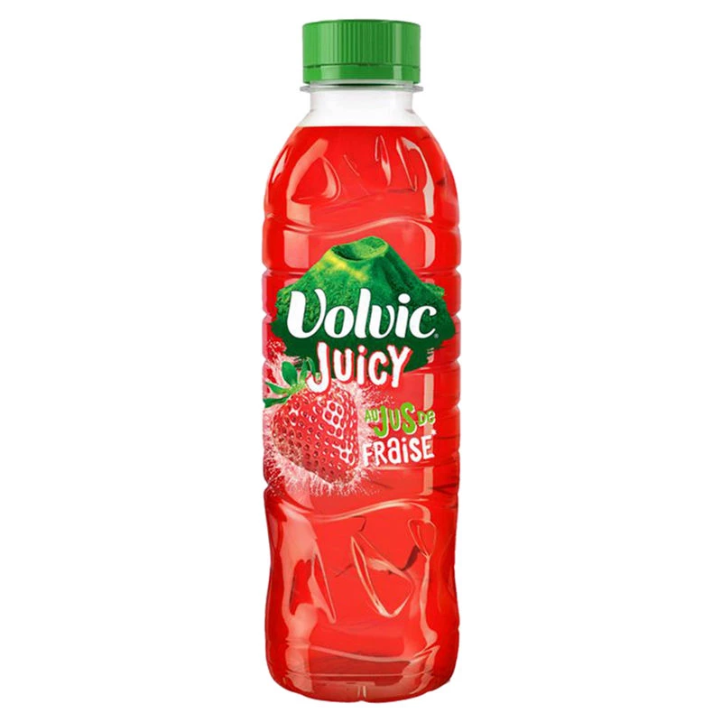 Eau minérale naturelle Volvic (85,5%), jus de fruits à base de concentré 10% (fraise 5%, citron 2,8%, raisin 2,2%), sucre (4%), concentré de carotte pourpre, arôme naturel.