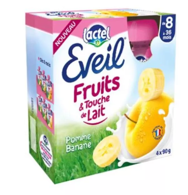 FOURNISSEUR EN Eveil Fruit&Touche de Lait Pomme Banane 4x90g - LACTEL EN GROS