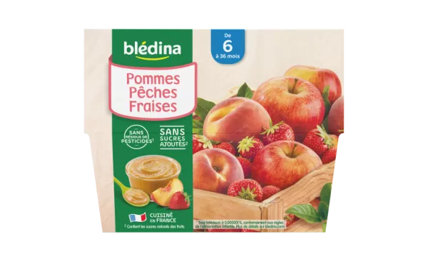 FOURNISSEUR EN Compotes coupelles pommes/ pêches/ fraises dès 6mois 4x100g - BLEDINA EN GROS