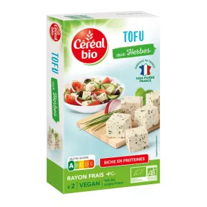 Tofu 94.2% (eau, soja, agent de coagulation : nigari), plantes aromatiques 3.3% (basilic, ciboulette, persil), sel de mer, poivre.
