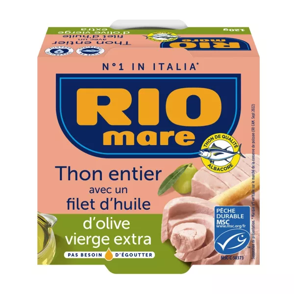 Thon albacore", huile d'olive vierge extra, sel "Thunnus (Neothunnus) albacares Pêche durable selon le référentiel MSC. www.msc.org/ BOLTON FOOD S.P.A., Via LEinaudi, 18/22, 22012 Cemenate ((3), talle www.riomare.com