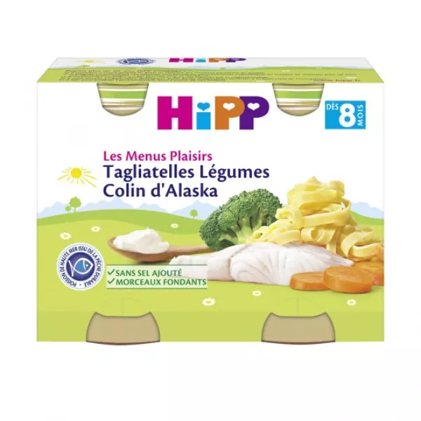 Plat bébé dès 8 mois tagliatelles légumes colin Bio 2x190g - HIPP