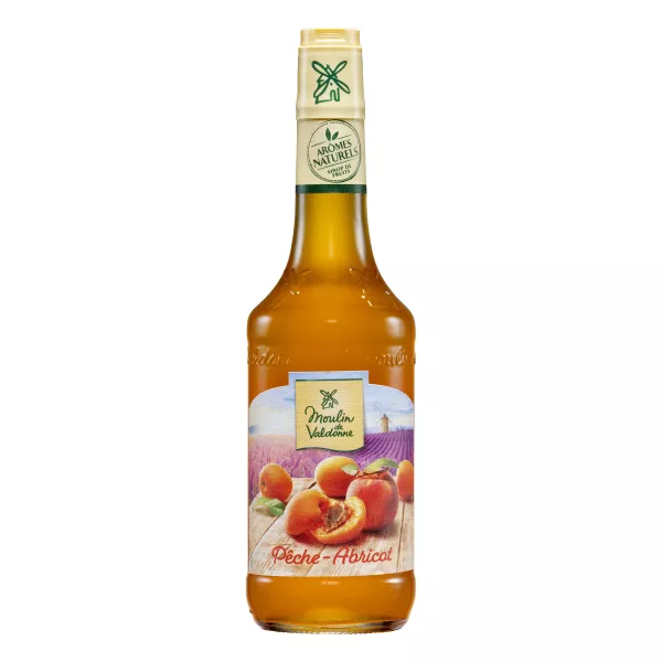 Sucre, jus de fruits à base de concentrés 38% (citron, pêche 7,9%, abricot 2,2%), eau, arôme naturel, stabilisant : ester glycérique de résine de bois, colorants extrait de paprika, lutéine (extrait de tagète).