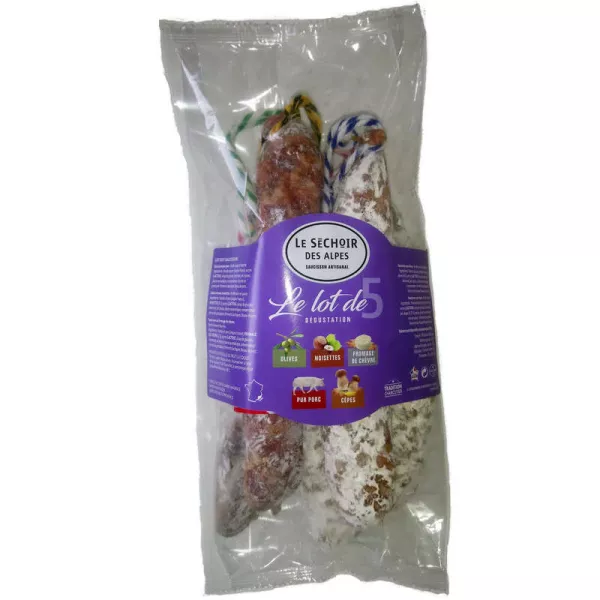 FOURNISSEUR EN Les saucissonnades 5 saucissons olives noisettes chèvre cèpes pur porc - LE SECHOIR DES ALPES EN GROS