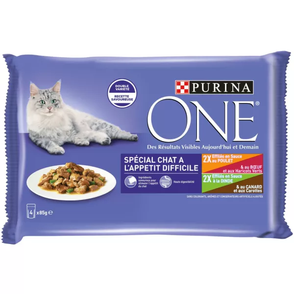 Grossiste Pâté pour chat adulte en Sauce Poulet, Bœuf et Haricots Verts 5x85g - PURINA