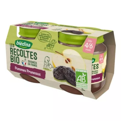 Compotes bébé pommes & pruneaux BIO dès 4/6 mois 2x130g - BLEDINA