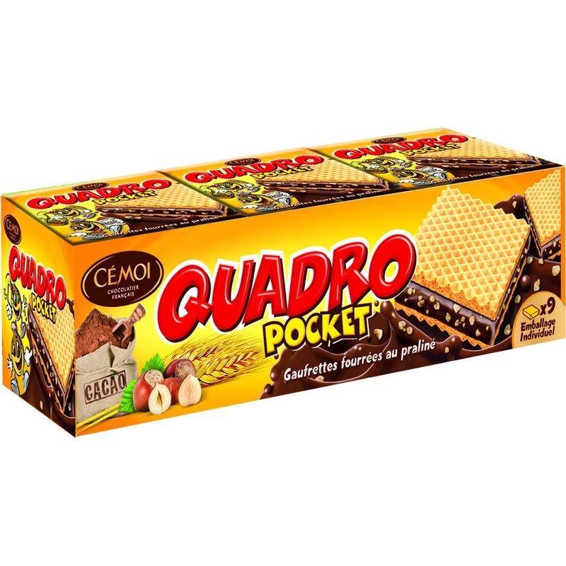 Gaufrettes quadro pocket chocolat praliné 187g - CÉMOI