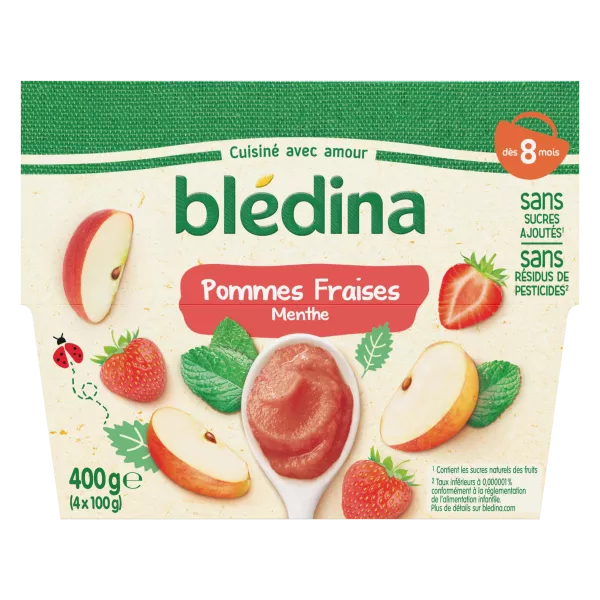Purée de fruits bébé dès 8 mois pommes fraises menthe 4x100g - BLEDINA