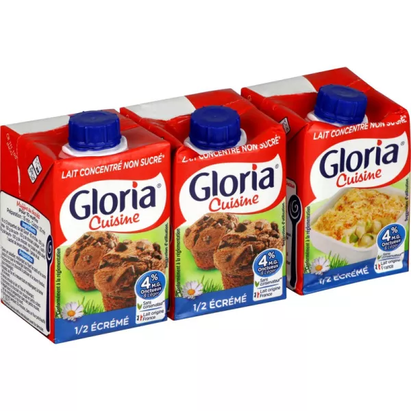FOURNISSEUR EN Lait concentré 1/2 écrémé non sucré 4% MG 3x200ml - GLORIA EN GROS