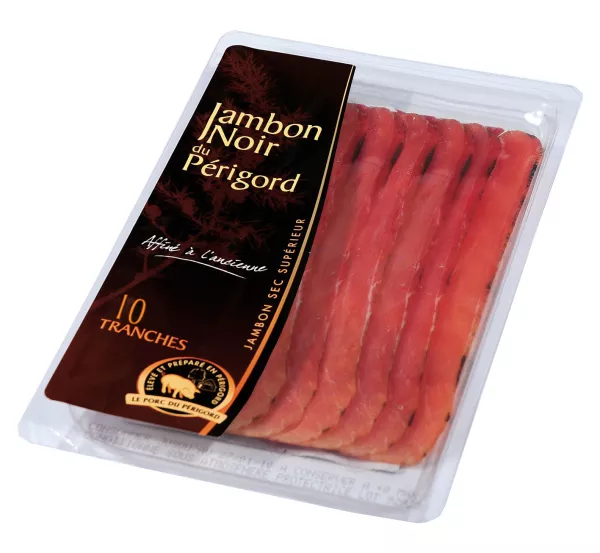 Jambon de porc, sel, dextrose, baies de genièvre partiellement séchées et broyées, conservateur : nitrate de potassium.