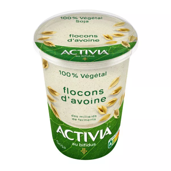 eau, fèves de _soja_ décortiquées (9,6 %), flocons d'_avoine_ complète (1,5%), sirop d'_avoine_ (1,4%), inuline, sucre (1%), citrate tricalcique, correcteurs d'acidité (acide citrique, citrates de sodium), épaississant (pectines de fruits), arôme naturel, sel, antioxydants (extrait riche en tocophérols, esters d'acides gras de l'acide ascorbique), ferments dont Bifidobactérium (Bifidus Actiregularis), vitamines (D, B12)