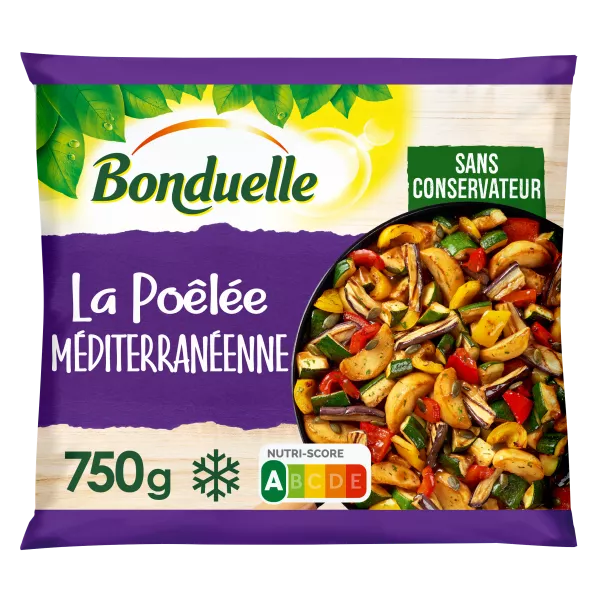 Courgettes 21%, pommes de terre préfrites 21% (pommes de terre 20%, huile de tournesol, dextrose), aubergines grillées 20%, courgettes grillées 11%, poivrons rouges 11%, eau, huile de tournesol 1.3%, farine de BLE, huile d'olive vierge extra 0.9%, basilic 0.75%, sel, ail 0.38%, romarin 0.1%, maltodextrine de pomme de terre, jus concentrés de légumes et d'aromates (tomate, courgette, carotte, poivron rouge, oignon, fenouil, ail), extraits de levure, arôme naturel. Peut contenir : CÉLERI