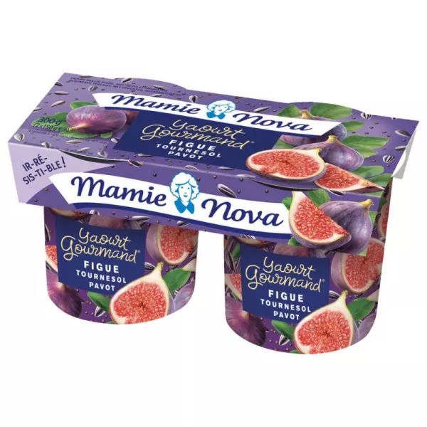 Leite integral, frutas 16,2%: figo 12,3% - maçã 3,9%, açúcar 8,5%, proteínas do leite, sementes de girassol 1%, sementes de papoula 0,4%, suco concentrado de sabugueiro, amido de milho, aromatizante natural, espessante: carragenanas (extrato de algas marinhas), fermentos lácticos (leite). Origem do leite: França.