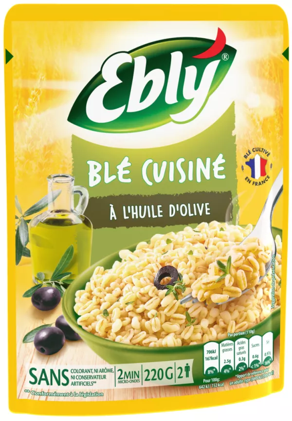 Trigo cozido no vapor (97%), azeite (1,8%), sal.