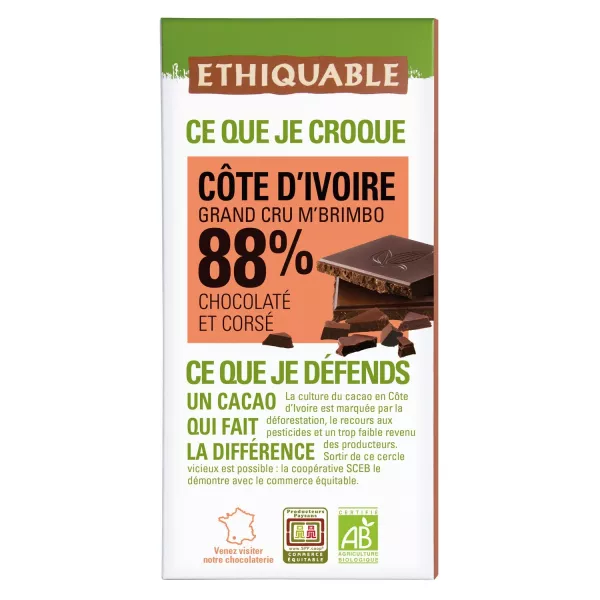 FORNECEDOR DE Barra de Chocolate Amargo 88% Cacau Costa do Marfim Orgânico 100g - Ethiquable POR ATACADO