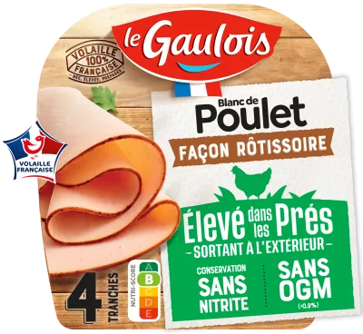 Carne de filé de frango da França: 90%, água, conservante: lactato de potássio, sal, dextrose de trigo, sabor natural, gelificante: carragenina, antioxidante: ácido ascórbico, açúcar.